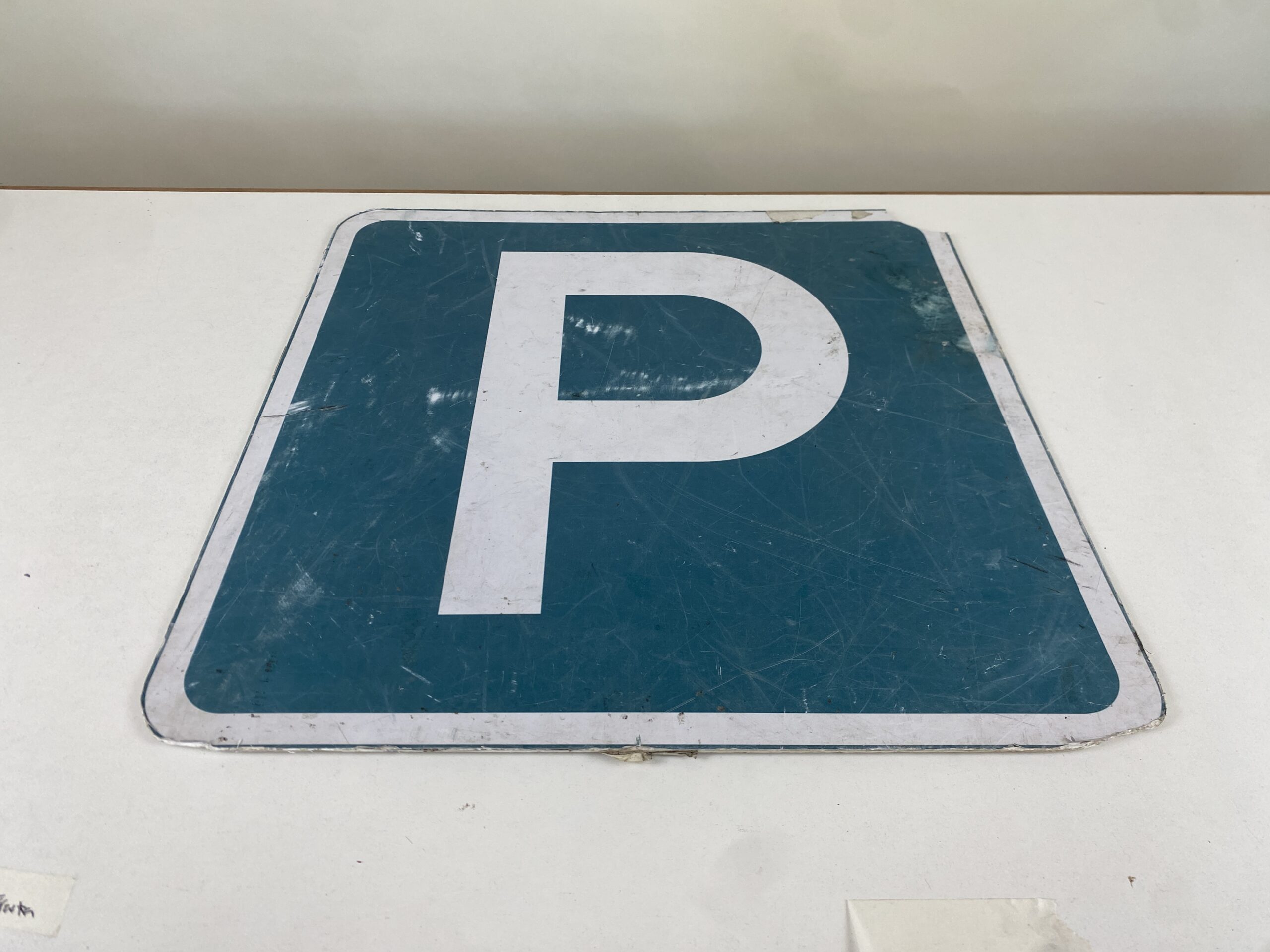 Señalética de parking en color azul y blanco