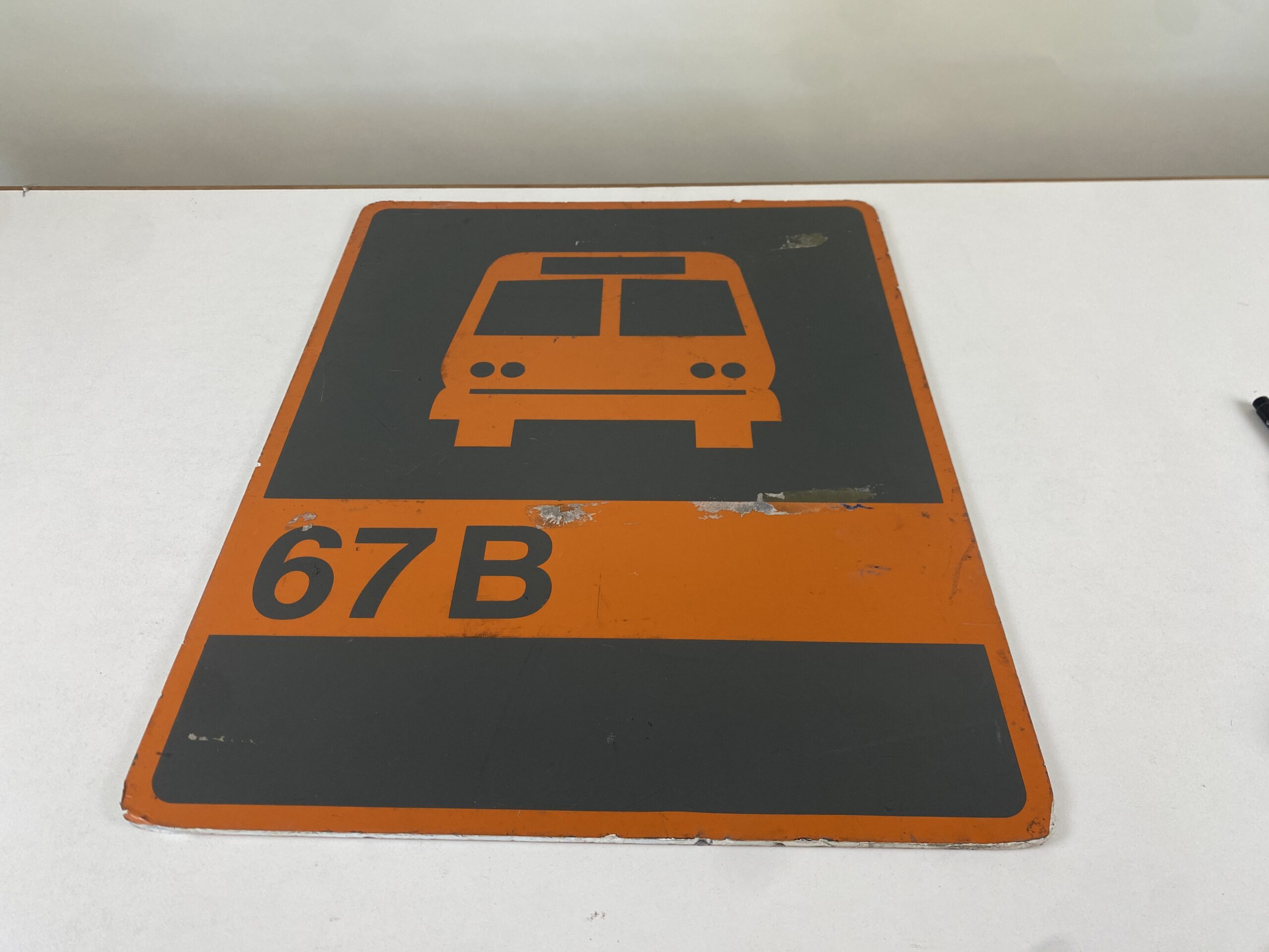 Señalética de parada de omnibus en color naranja y gris